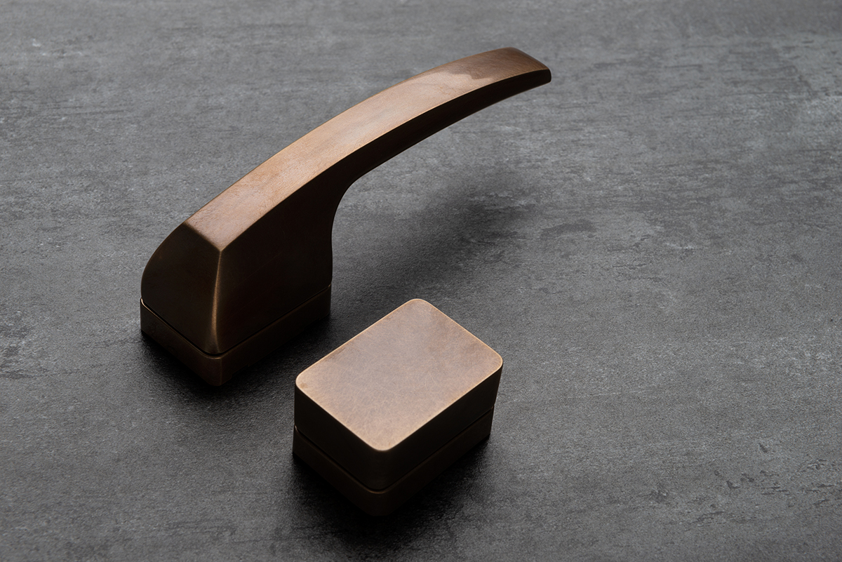 Hoci výsledný model pôsobí navonok veľmi jednoducho, vo vnútri skrýva sofistikované technické riešenie – integrovanú rozetu aj vratnú pružinu zámku priamo do tela kľučky, ktorá vďaka tomu zostáva pohľadovo čistá, bez viditeľných konštrukčných komponentov.