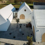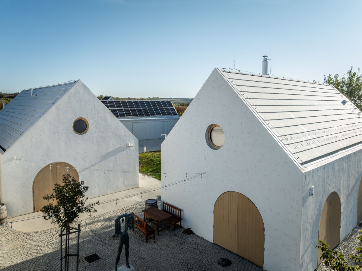 Ich tvarovanie nadväzuje na tradičné klenbové priestory vínnych pivníc a na brány remeselníckych či vinohradníckych stavieb. Na strechách bola použitá biela krytina, ktorá umocňuje kompaktnosť objektov a zároveň prispieva k energetickej efektivite. V letných mesiacoch sa podstrešie neprehrieva, čo má pozitívny vplyv na skladovanie vína aj pracovné podmienky zamestnancov. Aj z toho dôvodu nie sú v podkroví strešné okná – prirodzené svetlo zabezpečujú len subtílne kruhové okná v štítových stenách, čím sa zachováva čistota architektonického výrazu.