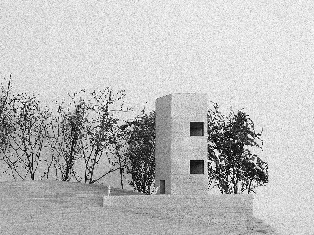 Nástup do navrhovaného komplexu je vedený z juhozápadnej strany, mlatová cesta ústi do parkovacej plochy situovanej v severozápadnom cípe parcely. Každá hmota sa vyznačuje inou funkčnou náplňou, pričom fungujú vo vzájomnej synergii a vystupujú ako komplementárne entity.