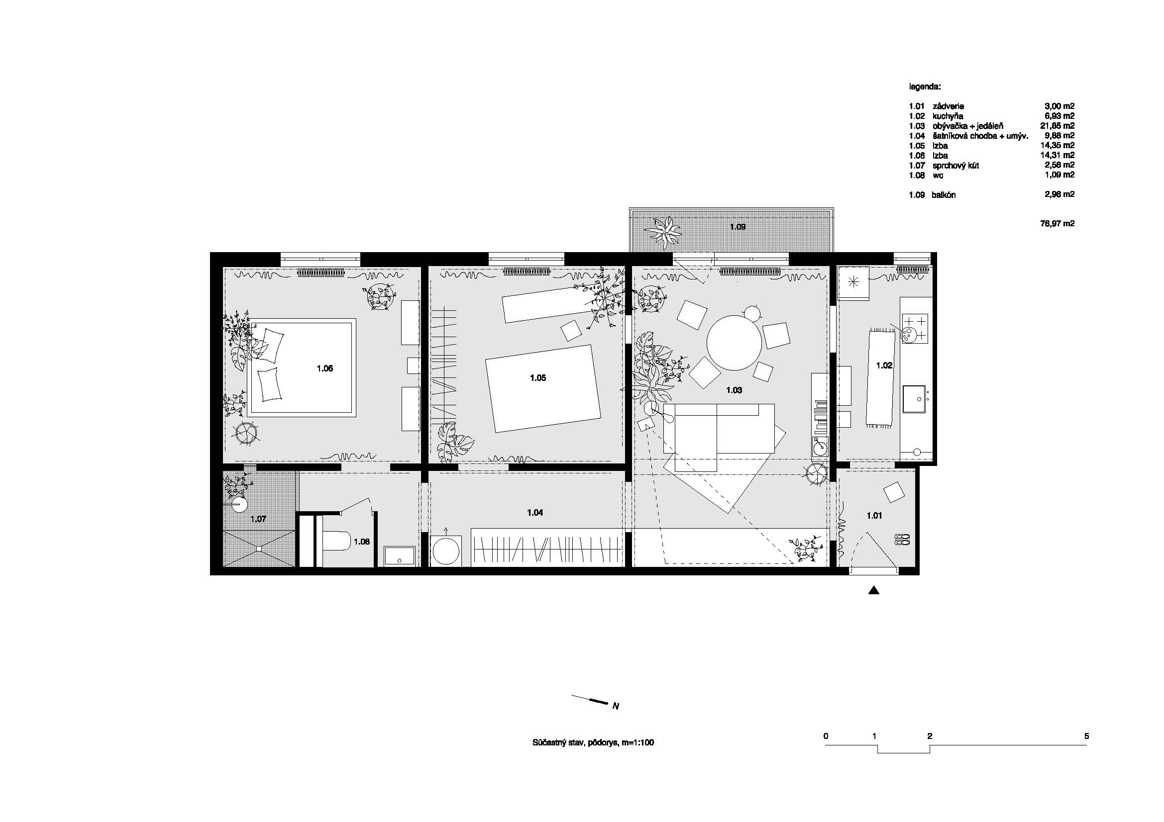 Matej: Je to byt po mojich starých rodičoch. Babička mi spomínala, že keď varila, bola od obývačky oddelená dvomi dverami a zádverím. Kuchyňa bola iba technickým zázemím bytu, nie súčasťou obytnej zóny – koncept bývania „nuclear family“, keď žena varila a starala sa o domácnosť. Dnes chcú byť rodiny spolu, preto tieto dispozície nefungujú.