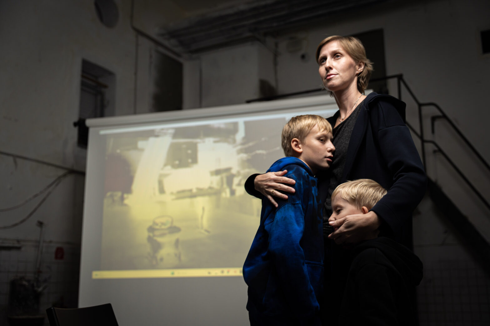 Keď je dieťa “domodelované”, muž za počítačom model uloží a “pretiahne” ho do iného programu. Na plátne sa ocitá model dieťaťa zasadený do piestoru kotolne v ktorej práve sedíme. Z predného radu hľadisku vstávajú tri postavy- žena a dve deti. Dvaja chlapci.